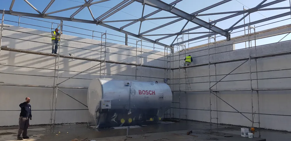Κατασκευή υπόγειου και υπέργειου συγκολλητού δικτύου αερίου 5’’, για την τροφοδοσία των νέων λεβήτων Bosch LOOS, της νέας πτέρυγας της γαλακτοβιομηχανίας ΚΡΙ-ΚΡΙ, στις Σέρρες.